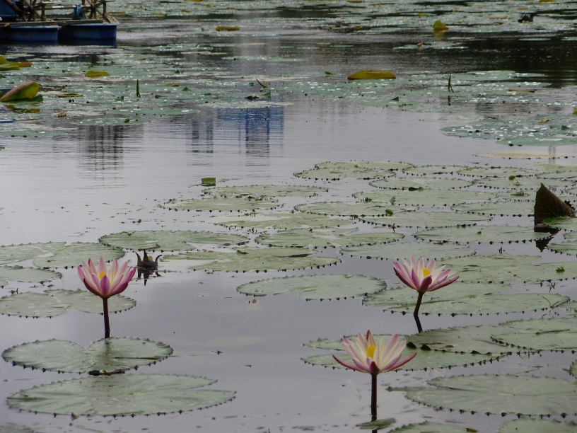 | A-D, clockwise from upper left: (A-C) Lotus flowers in a garden in Hyderabad where one India goes for walks. (D) The other India lives close by in make-shift homes. |