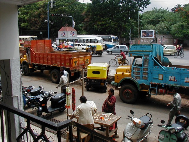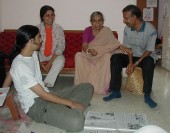 The only adventure was that the boys and I went with Rafi to Brigade Road ("downtown") where he was going to get his haircut. While he did that we walked a big circuit thru the downtown (I cd observe the boys getting the occasional looks from people, young women included, because of their hair as much as anything else). JS made the mistake of giving the first beggar boy we met all his small money, thus attracting a swarm of more such boys, one of whom was very persistent, fobbed off eventually only by Adam giving him one of his euro coins. We got back to Azeem's, and had a supper prepared by the 2 maids who work for the 2 families, mainly by Azeem's, a 17y-old named Shameem. This in turn made for swirls of conversation between Azeem, Rafi and Meher, and between she and I this morning, as you can imagine around the issues of how much help she is to the household, how much exploited she is or isn't, what the family can do to help, and (M and me) what some of the possible complications and implications of such help might be (informed variously by M's own experience as a teenager going to school and doing a maid's work for the family, and by the Mikalauskas family history, Anna's and Mary's early entries into the work force, Lenore's later, etc. etc. [Lenore is my mother; two of her older sisters, now dead, were Anna and Mary] |