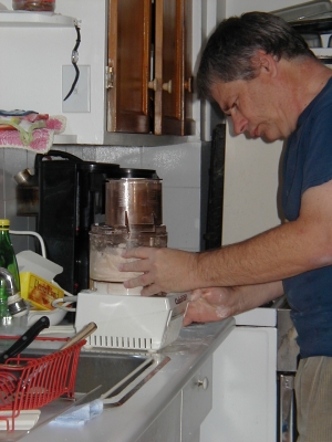 This year, finally, he acquiesced to ma Lenore's exhortations and used a food processor for making the pie dough. The cuisine art blender did the whole job in a few seconds with nary a swear word. So, the process has been modernized a bit this year.